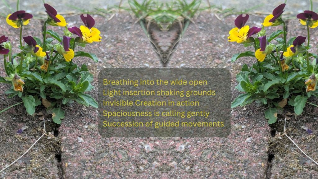 Poem by MicheleC’est déjà là ✨ De sa pureté mon Âme s’invite Du souffle léger l’Esprit respire Au loin j’entends : Hier le prunier n’avait pas de fleur mais au printemps le prunier est en fleur » Des gouttes de perle mon cœur s’apaise. Des gouttes de perle enveloppent les pétales nouvelles. Dans le silence les oiseaux s’appellent . En écho la nature s’éveille. La Vie invisible s’invite . Au son du bol l’ouverture au Ciel s’unit . Je m’abonne à la Lumière . Mon Âme enveloppe les couleurs . Libre et sans forme la fréquence du bol résonne. Je chemine dans l’intemporel dans l’illimité et reçoit en écho la paix et la joie à l’Eternité La tendresse de l’oiseau La fleur en dentelle La Grâce du prunier emprunt de délicatesse . Le Tout en harmonie joue sur les notes colorées . Mon Dieu j’aime la beauté de mon entièreté.